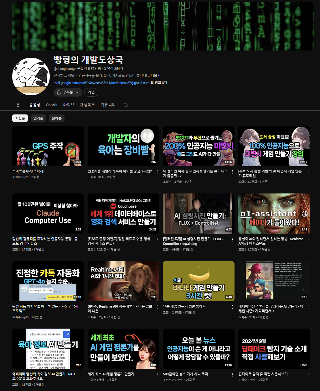 빵형님의 개발도상국 채널의 경우, 예전에 제가 학교에서 했던 프로젝트 중에서 '불법 주차 감시 로봇'을 만드는 과정에서 카메라로 주차된 차량의 번호판을 인식하는 기능을 구현하기 위해 참고할 자료를 찾는 과정에서 알게 되었습니다. 덕분에 프로젝트도 무사히 끝낼 수 있었고 지금까지 토이 프로젝트의 참고가 되어 주셨습니다.