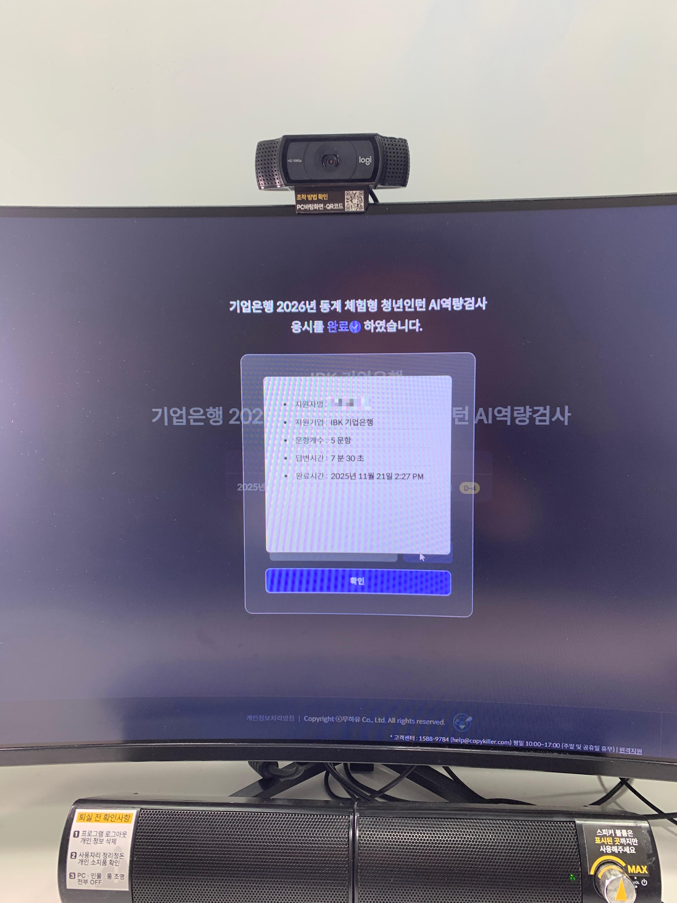 19일에는 메일을 통해 IBK AI 면접에 대한 안내를 받을 수 있었습니다. 안내 사항을 통해서 면접 응시는 작년과 같이 몬스터 AI를 통해 진행되는 것과 기타 사항들을 체크하였습니다. 이후, 저는 21일에 AI 면접을 응시하였습니다. 기업은행 AI 면접에 대한 간략한 후기를 요약하자면 한국어로 토익스피킹을 하는 것과 유사한 느낌을 받았습니다.